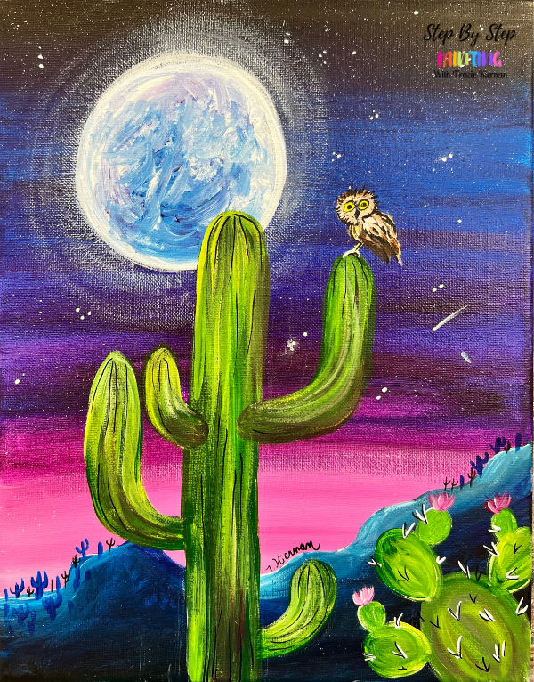 This beautiful "Desert Night With Owl & Moon" acrylic painting tutorial is an exclusive tutorial only available in the membership!