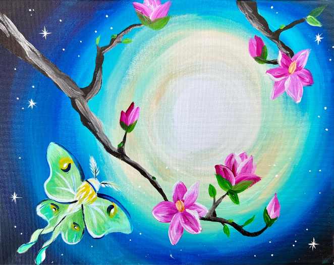 Luna Moth Magnolia Blooms - Acrylic Painting Tutorial
