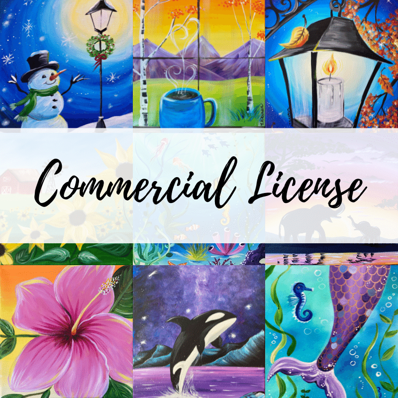 If you don't want to join the membership, you can purchase a one-time use license to use any ONE of Tracie's paintings for a paid paint party! You would be allowed to display one image of Tracie's painting to promote your event in advance. Note: If you are actively using Tracie's designs and displaying her images in your gallery you MUST be an active member in the Small-Business Membership. This one-time-use license is not for that purpose.
