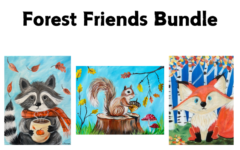 Download three of Tracie's "Fall Forest Animal Theme" paintings! With this bundle you get access to: