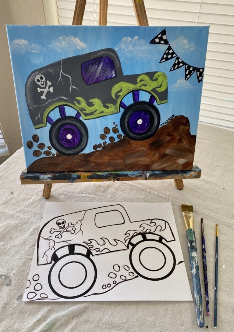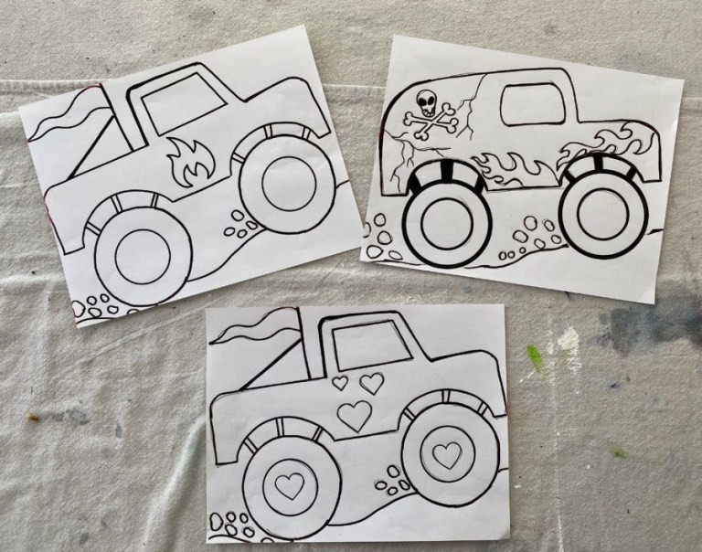 Note: the video shows Tracie teaching the gray skull truck pictured above, however, there are templates for different trucks and your child can customize colors and designs!