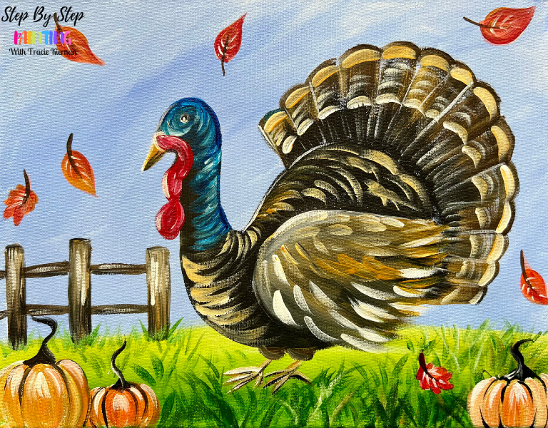 Turkey At A Pumpkin Patch Painting - Acrylic Tutorial